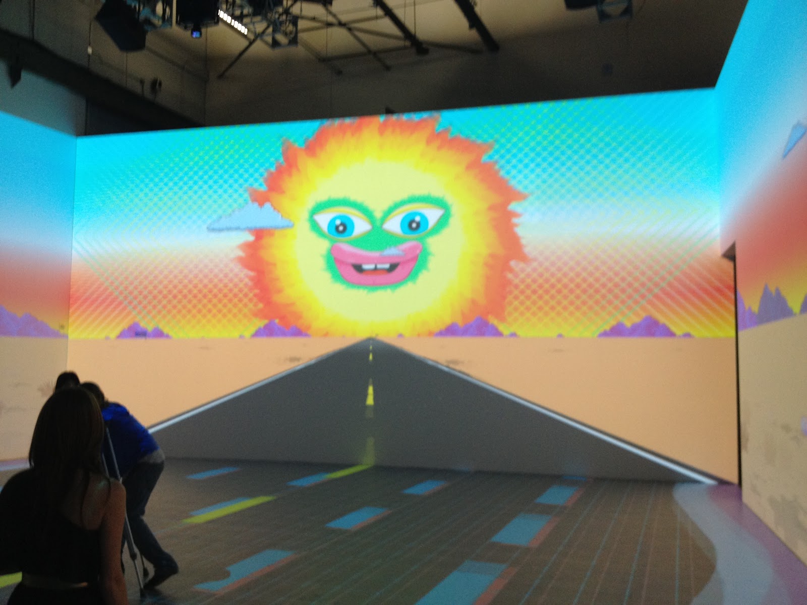 The space of the Geffen is the perfect place to house the large installation of works by 17 multi media artists. Once a police car warehouse, architect Frank Ghery renovated the building to create the perfect contemporary spot for avant garde and unusual exhibitions.